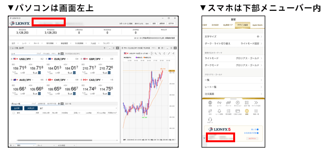 ・口座番号はLION FXの取引画面で確認することができます。