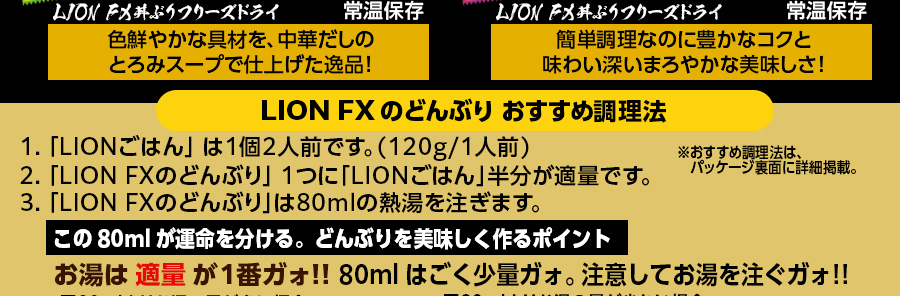 ・ヒロセ冷凍めし専用冷凍庫 ホワイト⁄80L (1台) ・国産うなぎ蒲焼(1尾) ・2026年度卓上カレンダー(1部) ・LION FX 親子丼の具(1人前~7人前) ・LION FX 牛とじ丼の具(1人前~7人前) ・LION FX 中華丼の具(1人前~6人前) ・LION FX 麻婆なす丼の具(1人前~6人前) ・LIONごはん(2人前~26人前【1個2人前】) ・LION FX 計量カップ(1個) ※プレゼント条件参照 |