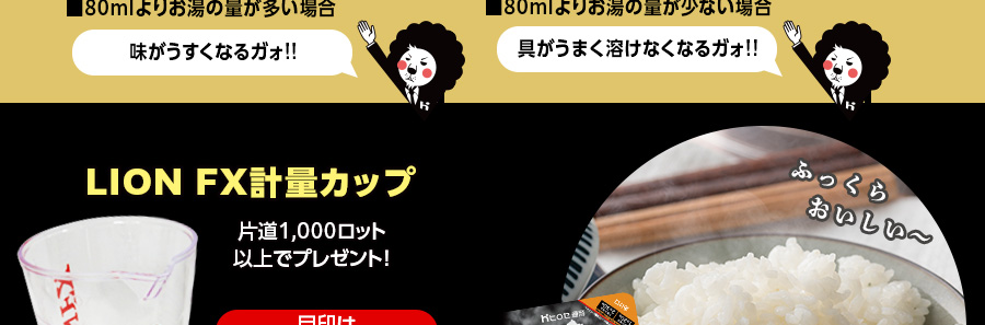 | キャンペーン期間中(2025年11月3日AM 8:00~2025年12月1日AM 8:59まで)にLION CFDで対象取引数量以上取引していただいた方に、キャンペーン商品をプレゼント! | ||