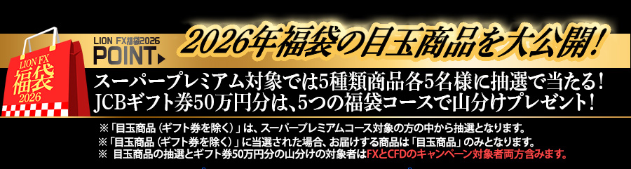 | キャンペーン期間中(2026年1月2日AM 8:00~2026年2月2日AM 8:59まで)にLION CFDで対象取引数量以上取引していただいた方に、キャンペーン商品をプレゼント! | ||