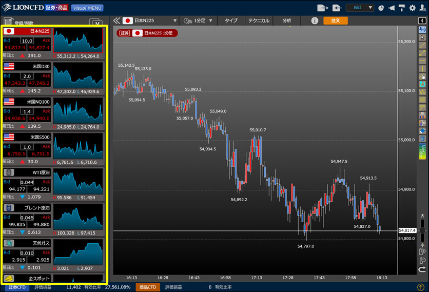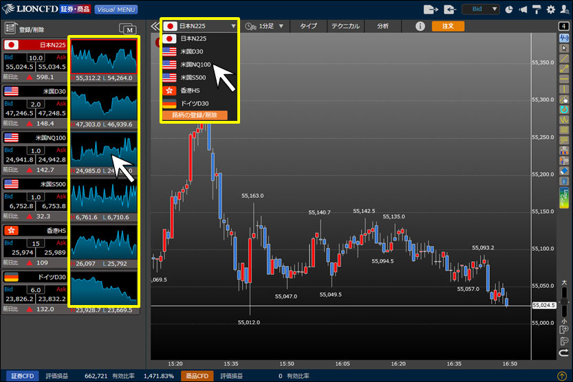 2. 銘柄を切り替える場合は、チャートを表示したい銘柄のミニチャートをクリック、