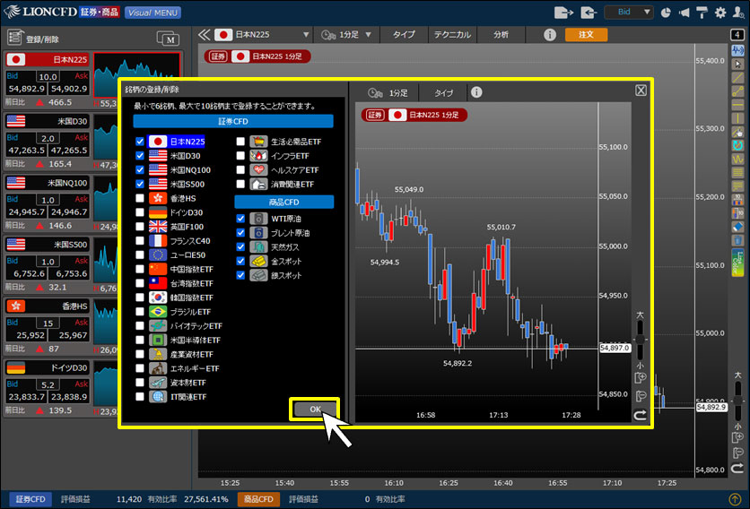5. 銘柄の登録/削除画面が表示されます。表示したい銘柄にチェックを入れ、【OK】をクリックします。