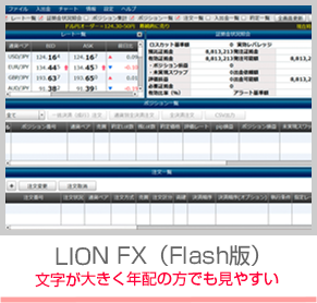 初心者の方でもわかりやすく文字の大きさやシンプルさを重視し、複雑な機能をあえてカットし作られたFlashタイプの取引システムです。年配や初心者の方にもオススメしている取引システムです。 |