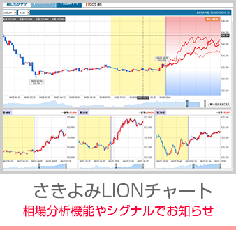 過去のチャートから現在と似ている相場を探しだし、それに基づいて未来の為替レートの動きを予測するチャート機能です。どなたでも、簡単に未来のチャートを予測できる便利な機能となっております。