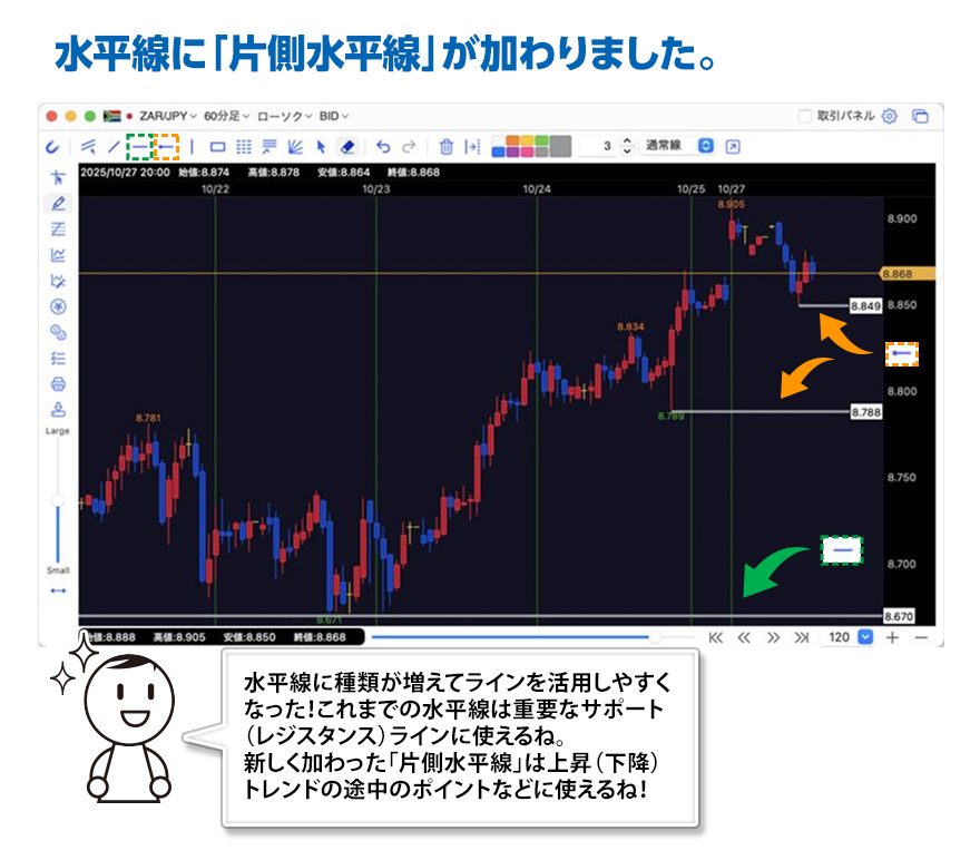 ローソク足と異なる時間軸のテクニカル表示が、より多くの種類のテクニカルに対応できるようになりました。