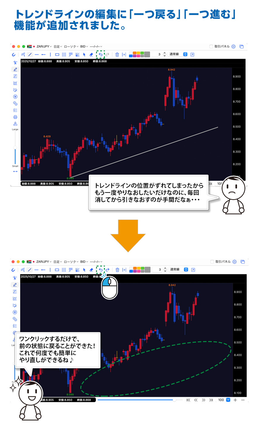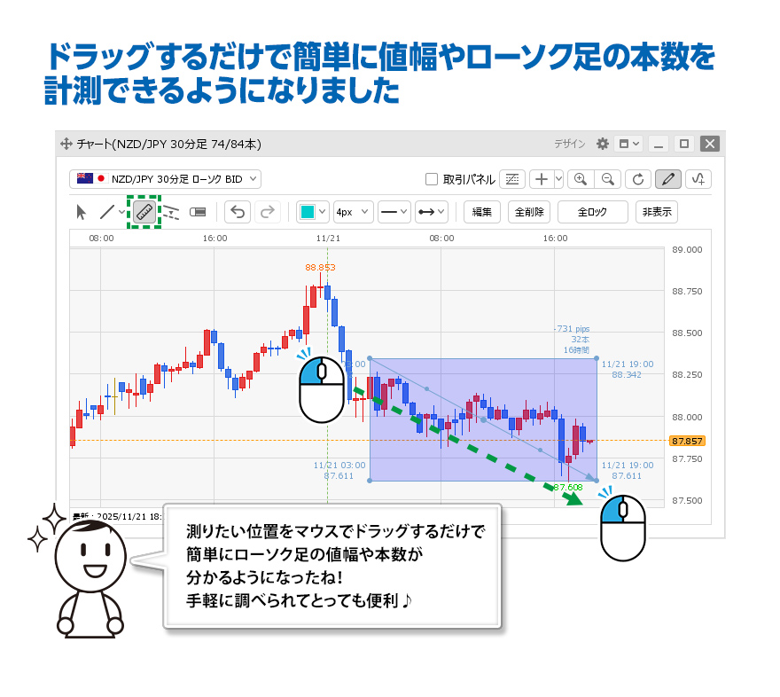 スマホアプリのように、チャートを値段軸のところまで目いっぱい広げて、チャートを大きく表示できるようになりました!