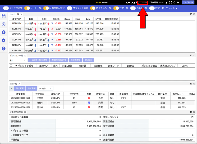 1. 口座番号は画面右上のお名前の右隣に表示されています。