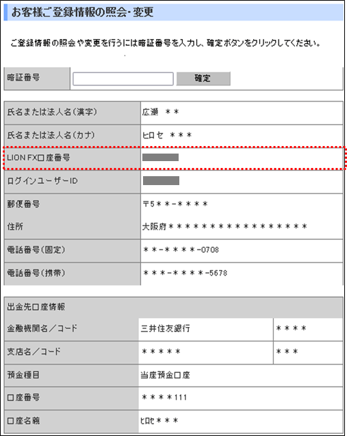 3. 【お客様ご登録情報の照会・変更】画面が表示され、口座番号の確認ができます。