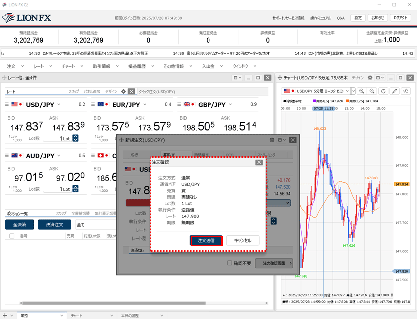 6.【注文確認】画面が表示されますので、内容を確認後【注文送信】ボタンをクリックします。
