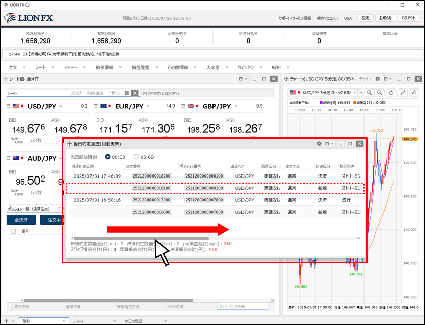 ※ポジションの表示が変わらない等があれば、必ず注文履歴で注文・約定状況をご確認ください。