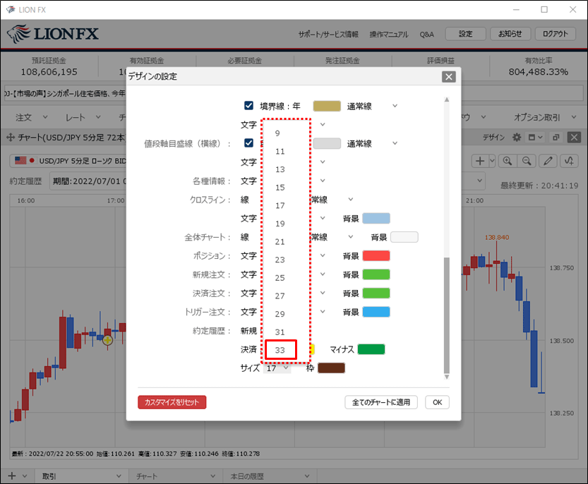 ※表示中の全てのチャートに同じデザイン設定を行いたい場合は、【全てのチャートに適用】ボタンをクリックします。