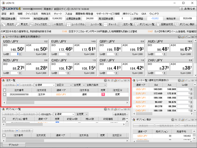※【レートパネル】、【レート一覧】からの注文の場合、注文方法が通常注文になっていることを必ずご確認ください。